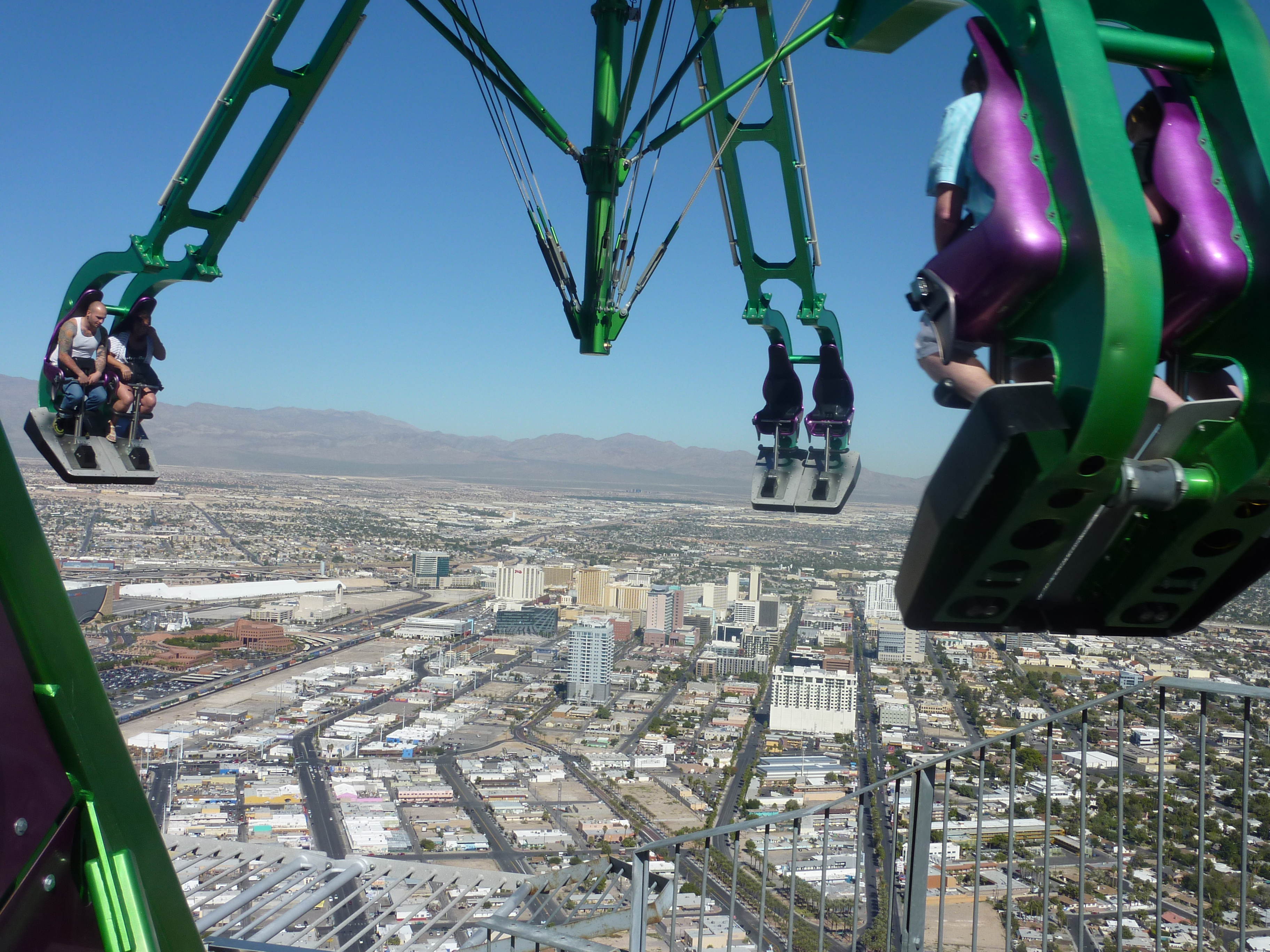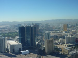 Vervolgens konden we de auto weer op laten halen, Valet parking is wel een grote uitkomst. Omdat we pas om 15u konden inchecken zijn we eerst naar het uiteinde van The Strip gegaan, naar Stratosphere. Onderweg kwamen we het Circus Circus tegen, maar die hebben we links laten liggen. Het zou nog meer hetzelfde als Fremont zijn en het heeft een grote adventuredome, maar daar zijn we niet echt voor in de stemming, dat komt in Disney nog wel. En we kwamen langs Fountainebleau. Dit is een hotel dat in 2009 open zou moeten gaan, maar de eigenaren zijn failliet gegaan en nu lijkt het aan de buitenkant boven af, en voor de rest is het niet afgebouwd. Sinds vorig jaar is er helemaal niets aan veranderd. Aangekomen bij Stratosphere hebben we de auto sleutels heerlijk makkelijk weer bij de Valet parking afgegeven.