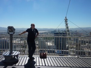 In het Stratosphere zijn we naar boven gegaan, naar de 108e verdieping. De lift ging zo snel dat je oren ervan gingen suizen. En het uitzicht boven is echt geweldig. Je kijkt zo naar de Strip en kan de meeste hotels zien liggen en vanaf daar lijken ze best heel klein. Ook het vliegveld kan je goed zien liggen en je ziet de vliegtuigen echt landen. Dat is een heel machtig gezicht. We hebben hier ontbeten bij de sandwichbar waar je bij je brood ook een zak chips kreeg, de combinatie ontgaat ons, maar het zal. Het was in ieder geval relaxt ontbijten met een geweldig uitzicht! Op het panaromadek kwamen we ook een ander Nederlands stel tegen waarvan de man niet bij het raam durfde te komen vanwege de hoogtevrees. Op deze 108e verdieping zijn ook de thrillrides te weten de Skyjump, Insanity, X-scream en de Big Shot. Toen hij zag dat mensen echt vanaf daar in een thrill ride gingen, kon hij er met zijn gedachten niet bij en bleef hij nog dichter bij de binnenring. Wij hebben lekker gekeken naar die mensen die wel van de rides gebruik gingen maken en daarbij ging het ons ook al door de maag.