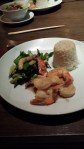 Bij Lemongrass hebben we echt geweldig gegeten. Het early evening menu bestond eigenlijk niet voor gasten die alleen in het restaurant komen, het hoorde bij een ticket voor Zarkana, de show van Cirque du Soleil in Aria. Maar de website gaf dat niet aan en daarom kregen we op ons verzoek toch dat menu. Het bestond uit een loempia en viscake vooraf. Als hoofdgerecht grote garnalen in knoflook met een groene curry met kip en als dessert kokosmelk met vruchten. Echt super verrukkelijk en niet te vet dus een super keuze!