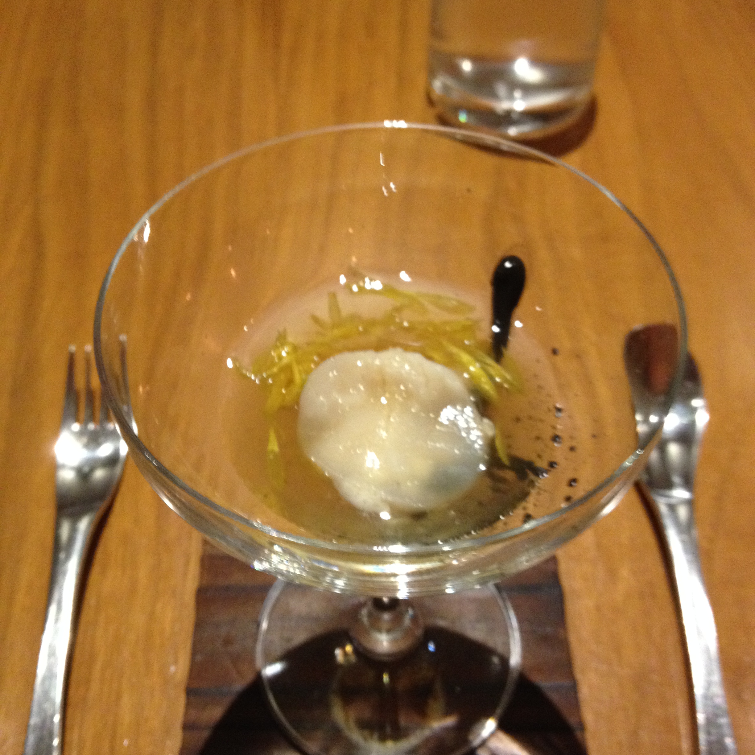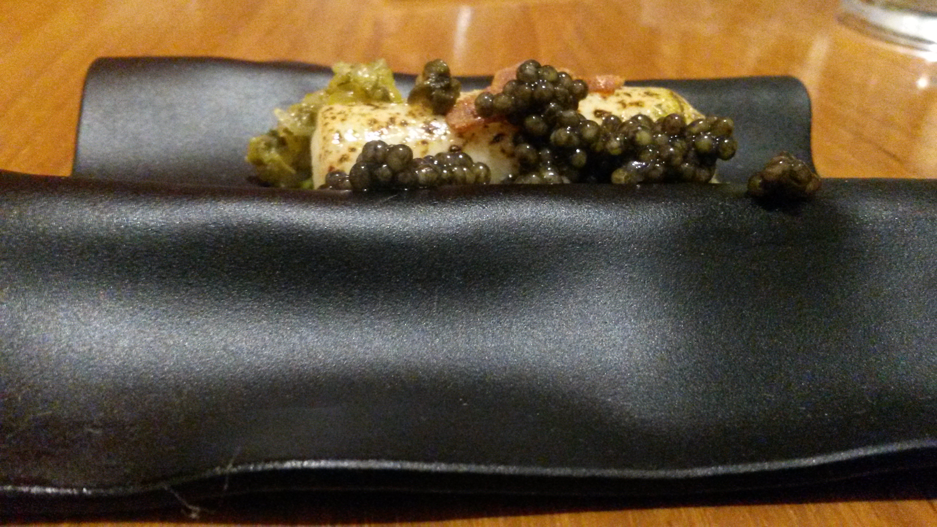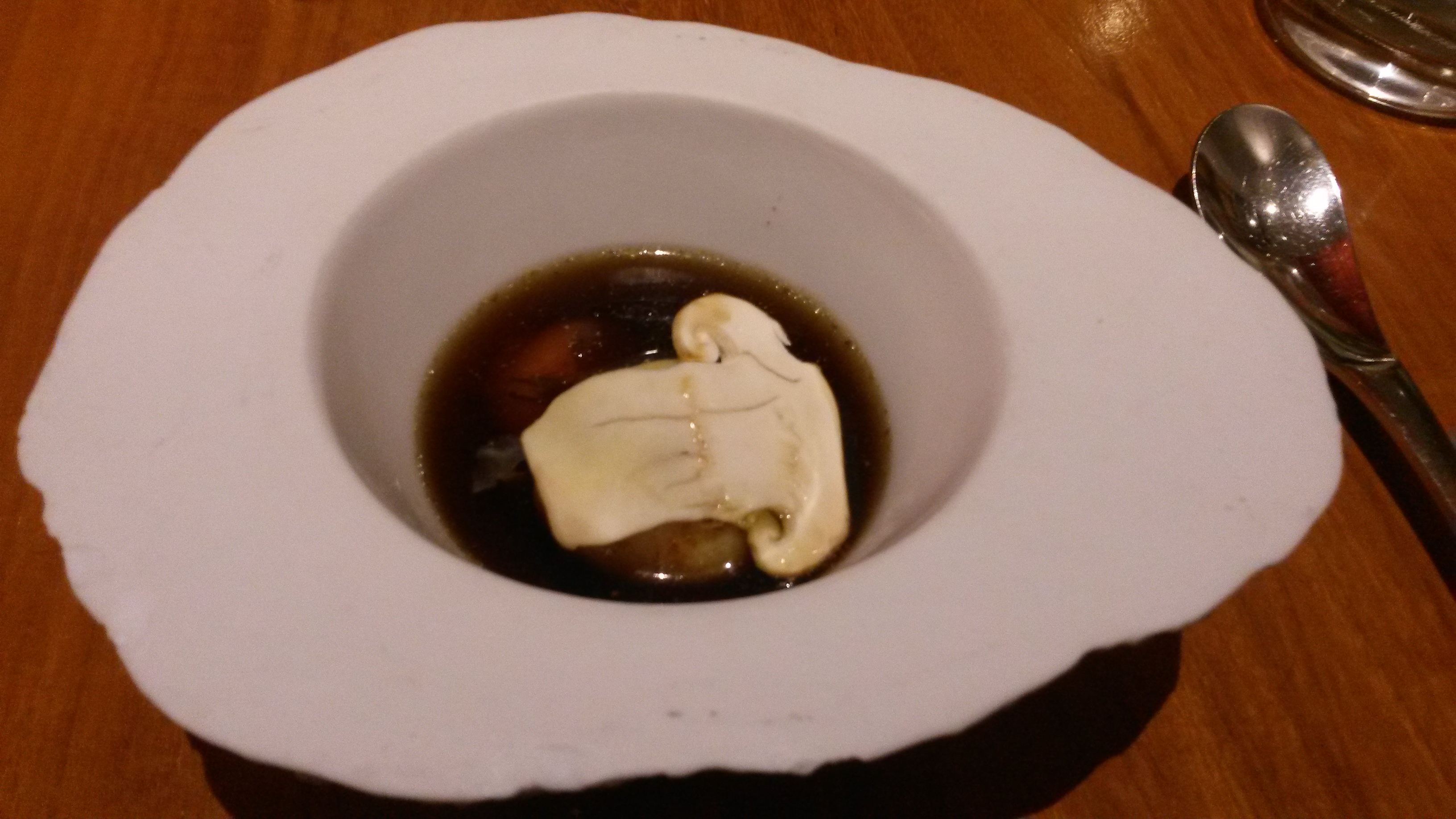 We verslapen ons bijna… en na om 19 uur wakker te zijn geworden wordt het een race tegen de klok om op tijd bij Atelier Crenn aan te komen. We missen de Caltrain van 19:25 uur en lopen naar Arleta station om de tram te pakken. Deze blijft echter maar vertraging oplopen waardoor we uiteindelijk net zo goed de trein van een uur later kunnen pakken… weer terug naar dat station dus. In de trein besluit Eline dat we de 5 km. van het station naar Atelier Crenn met een taxi af gaan leggen. Een schot in de roos, de taxichauffeur heeft er zin in en scheurt lekker door San Francisco heen. Precies wat we nodig hebben. Na ongeveer 10 minuutjes zet hij ons af op de hoek van Fillmore Street en Lombard, hoge hakken aan (Eline dan…) en gaan 🙂 de laatste meters lopen we en om 21:05 uur stappen we het restaurant binnen.