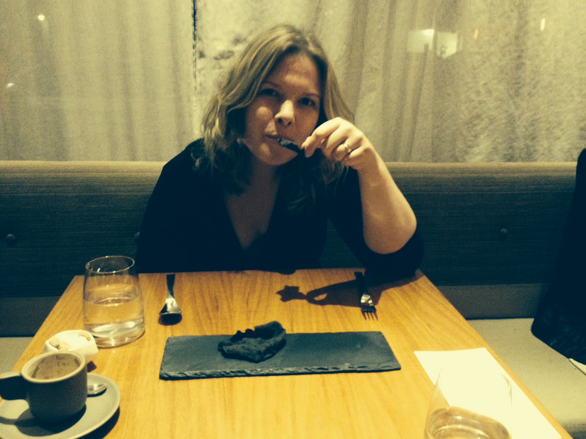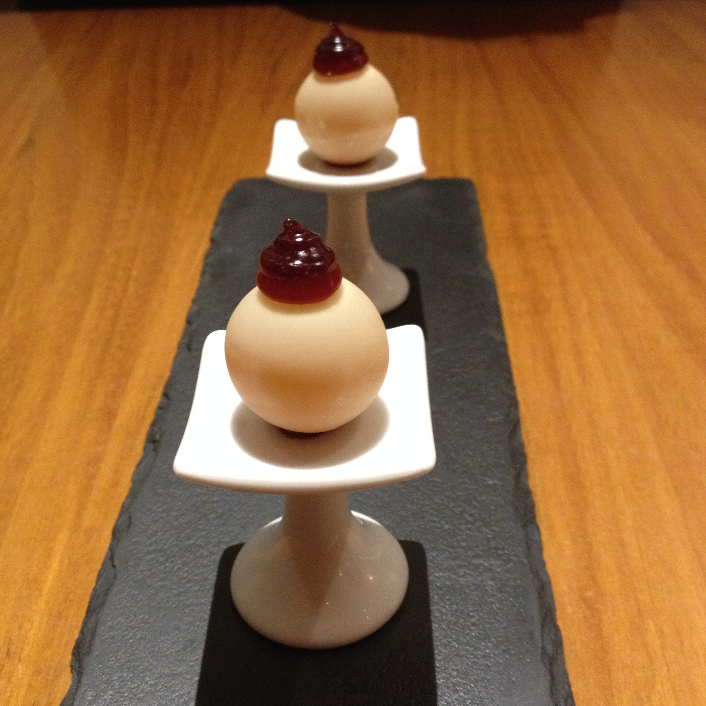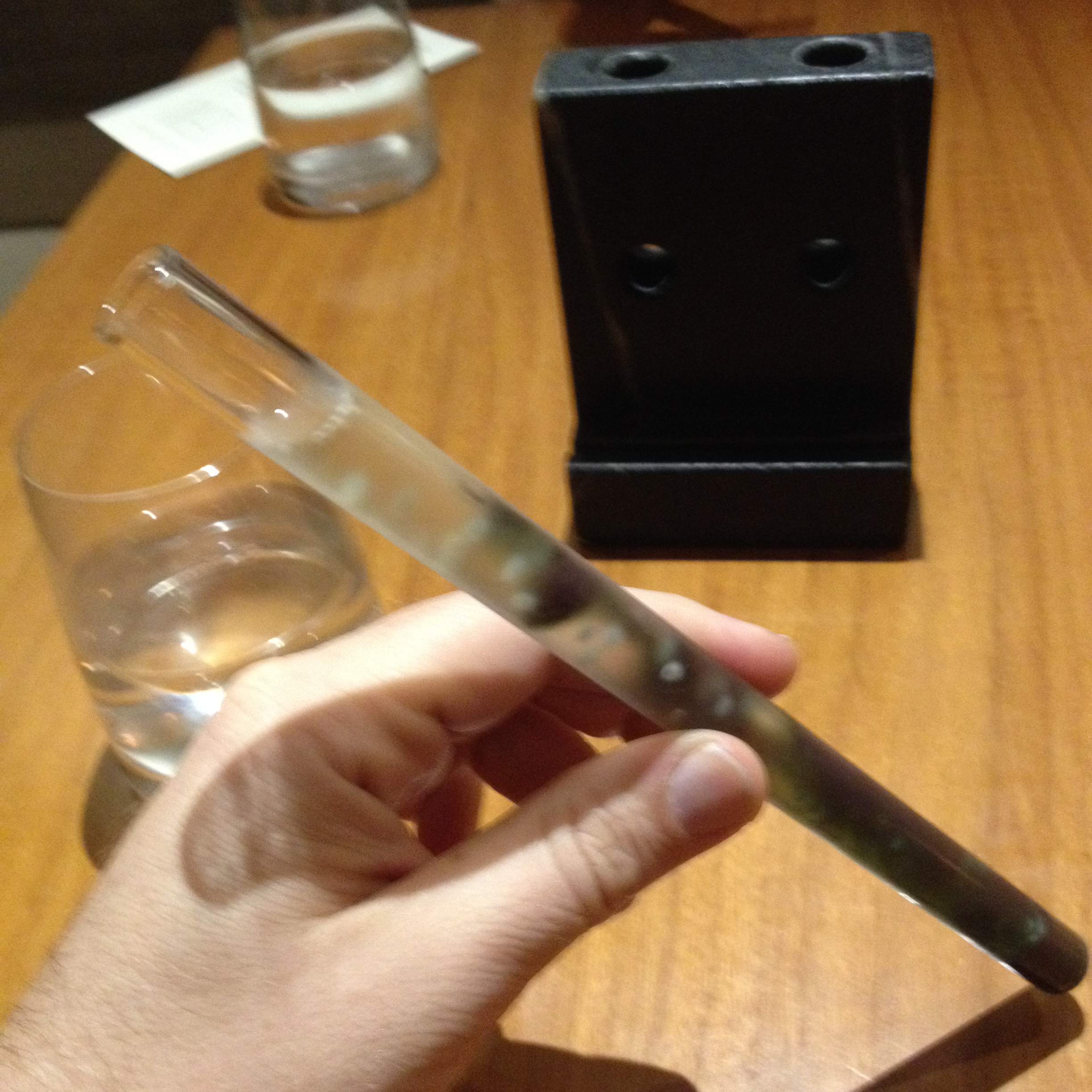We verslapen ons bijna… en na om 19 uur wakker te zijn geworden wordt het een race tegen de klok om op tijd bij Atelier Crenn aan te komen. We missen de Caltrain van 19:25 uur en lopen naar Arleta station om de tram te pakken. Deze blijft echter maar vertraging oplopen waardoor we uiteindelijk net zo goed de trein van een uur later kunnen pakken… weer terug naar dat station dus. In de trein besluit Eline dat we de 5 km. van het station naar Atelier Crenn met een taxi af gaan leggen. Een schot in de roos, de taxichauffeur heeft er zin in en scheurt lekker door San Francisco heen. Precies wat we nodig hebben. Na ongeveer 10 minuutjes zet hij ons af op de hoek van Fillmore Street en Lombard, hoge hakken aan (Eline dan…) en gaan 🙂 de laatste meters lopen we en om 21:05 uur stappen we het restaurant binnen.