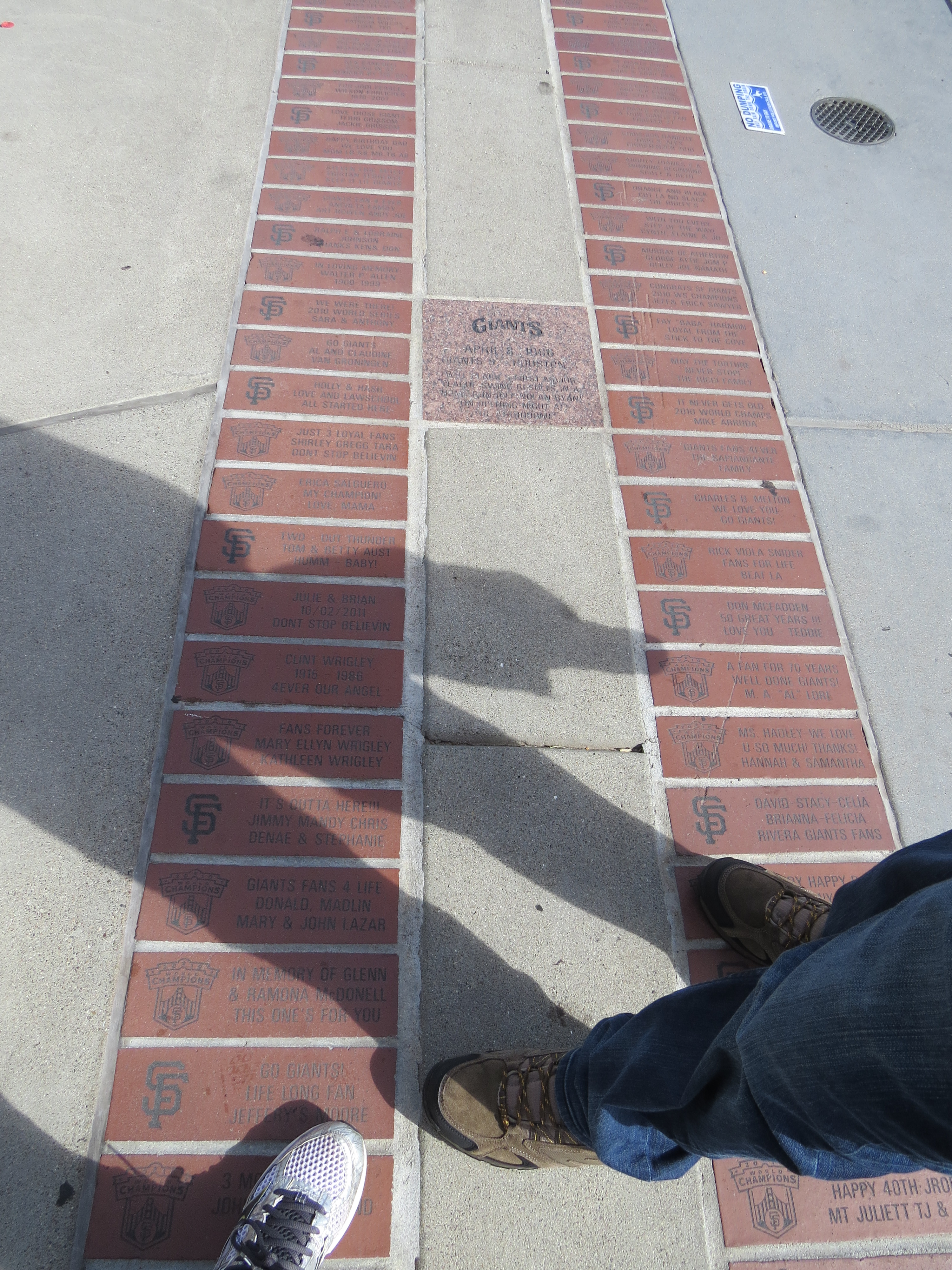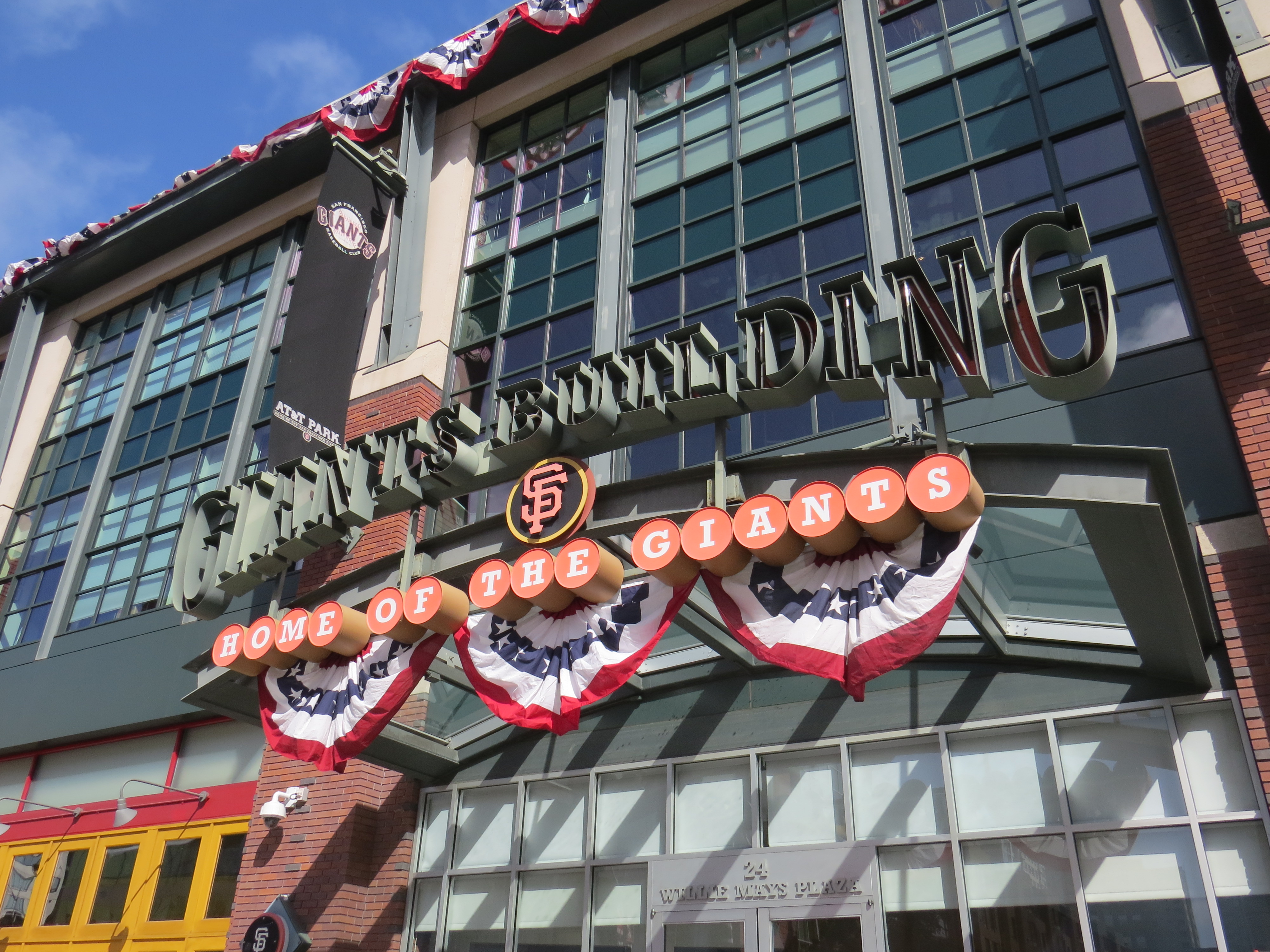 Het stadion ligt direct aan de baai tussen San Fran en Oakland. Er liggen al diverse boten met Giant vlaggen klaar in het water. Sommigen hebben kano’s aan boord, als de wedstijd begint verzamelen mensen zich in de kano’s achter AT&T Park in de hoop de honkballen te vangen die ‘out of the park’ vliegen na het slaan van een homerun. We lopen een mooi stukje langs de boulevard en vergapen ons aan vele zeilboten die in South Beach Harbor liggen.