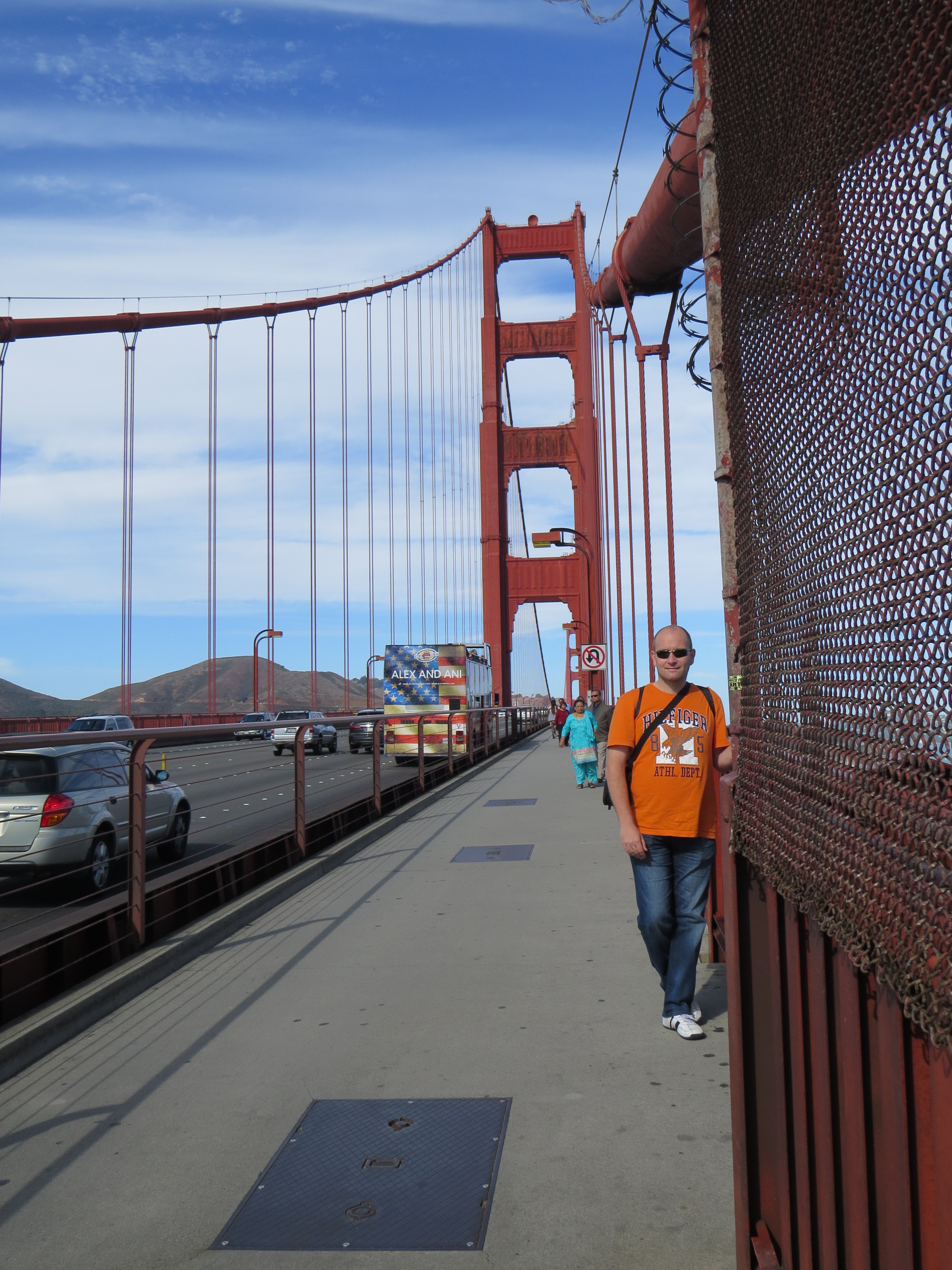 Rond de middag vertrekken we met de trein naar San Fran, hierna een stukje lopen om bij een soort busterminal de Golden Gate Transit op te stappen. Deze bus brengt ons in rap tempo aan het begin van de Golden Gate Bridge. Geweldig om de bekende brug eindelijk van dichtbij te zien en om erop te lopen!