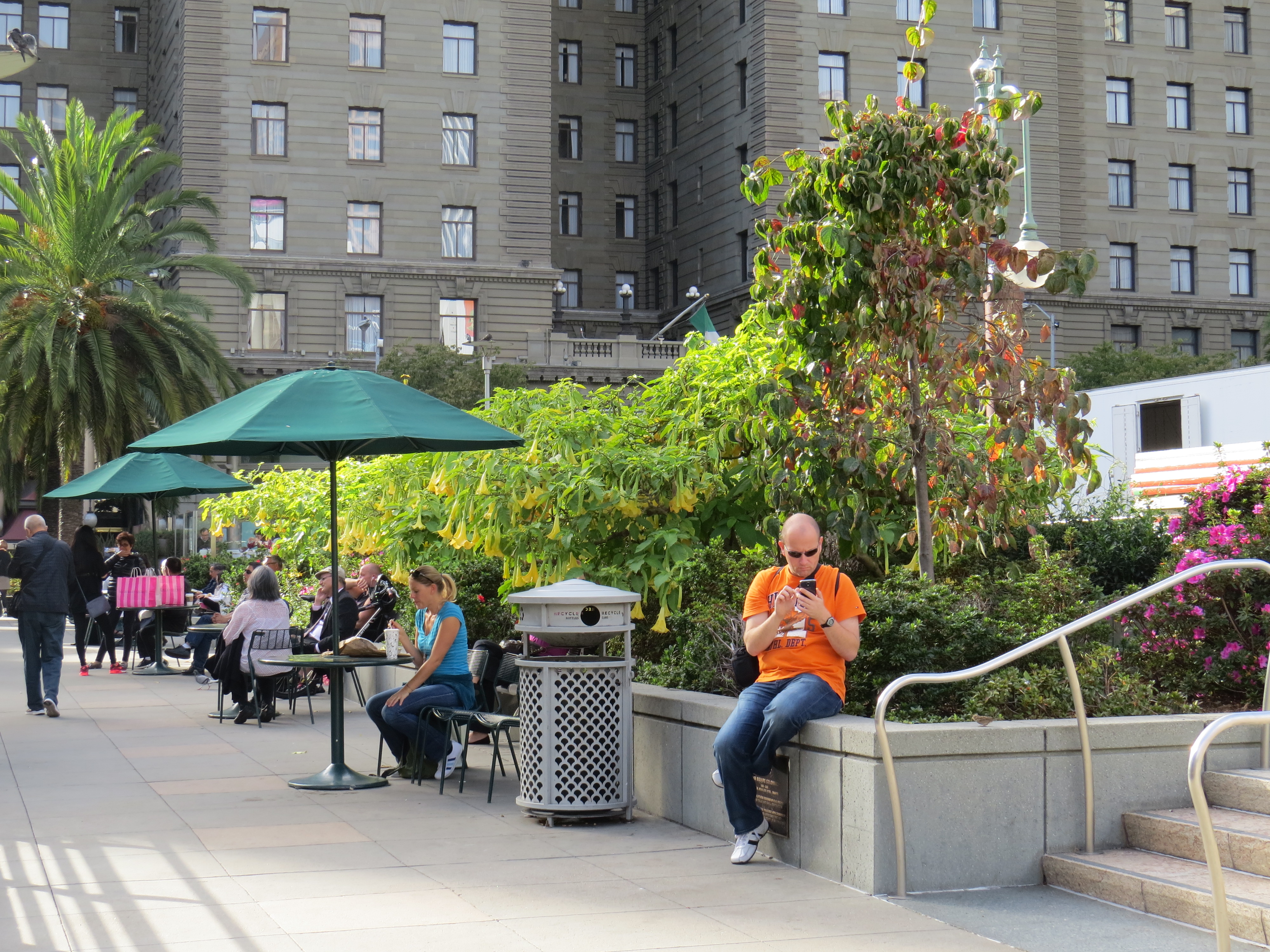 Na onze wandeling op de brug nemen we de bus richting het centrum van de stad, we willen Union Square bezoeken en vanaf daar naar het Caltrain station wandelen.