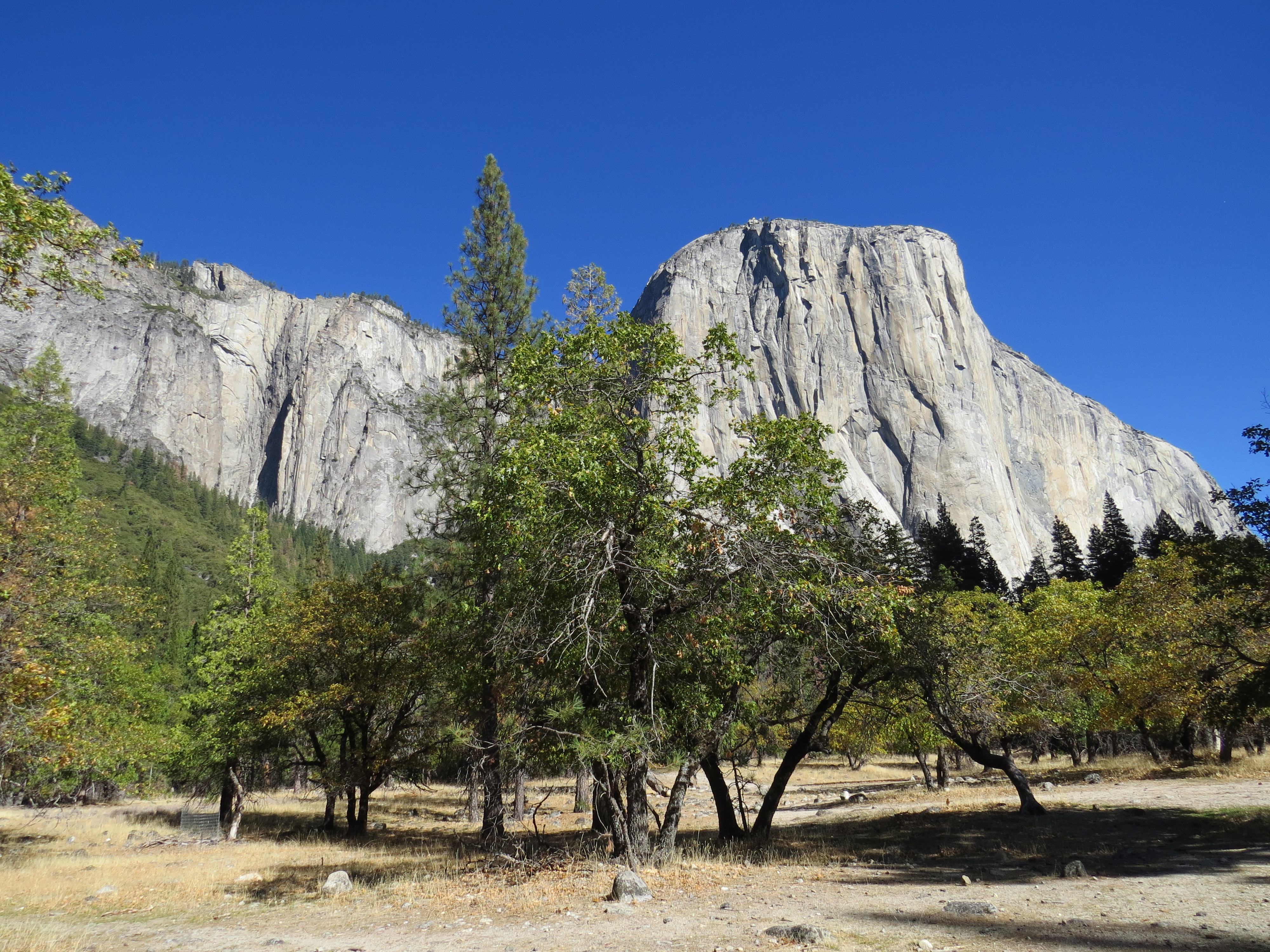 Na een stukje rijden komen we bij een parkeerplaats iets dichterbij El Capitan en de omliggende rotsen.