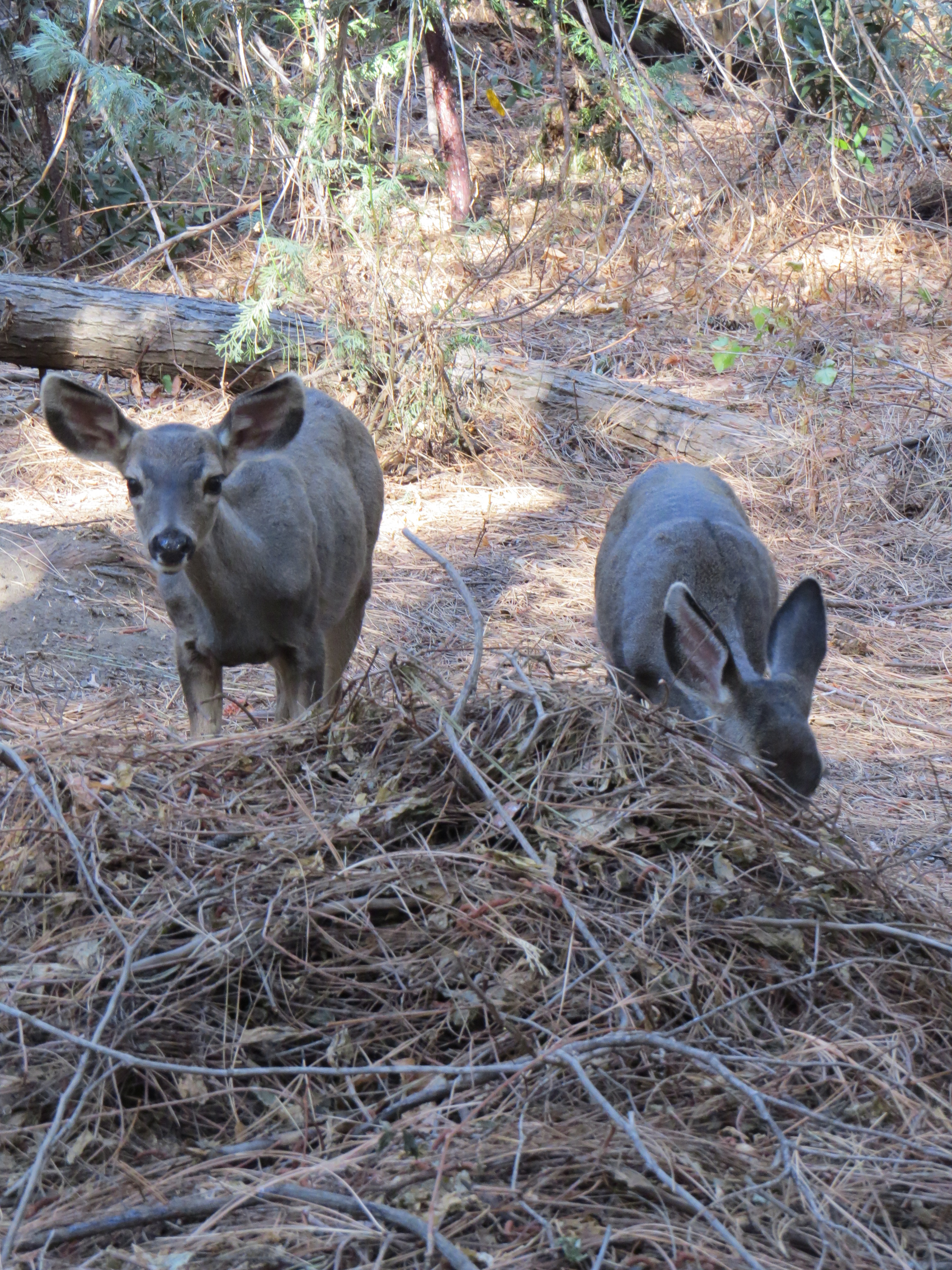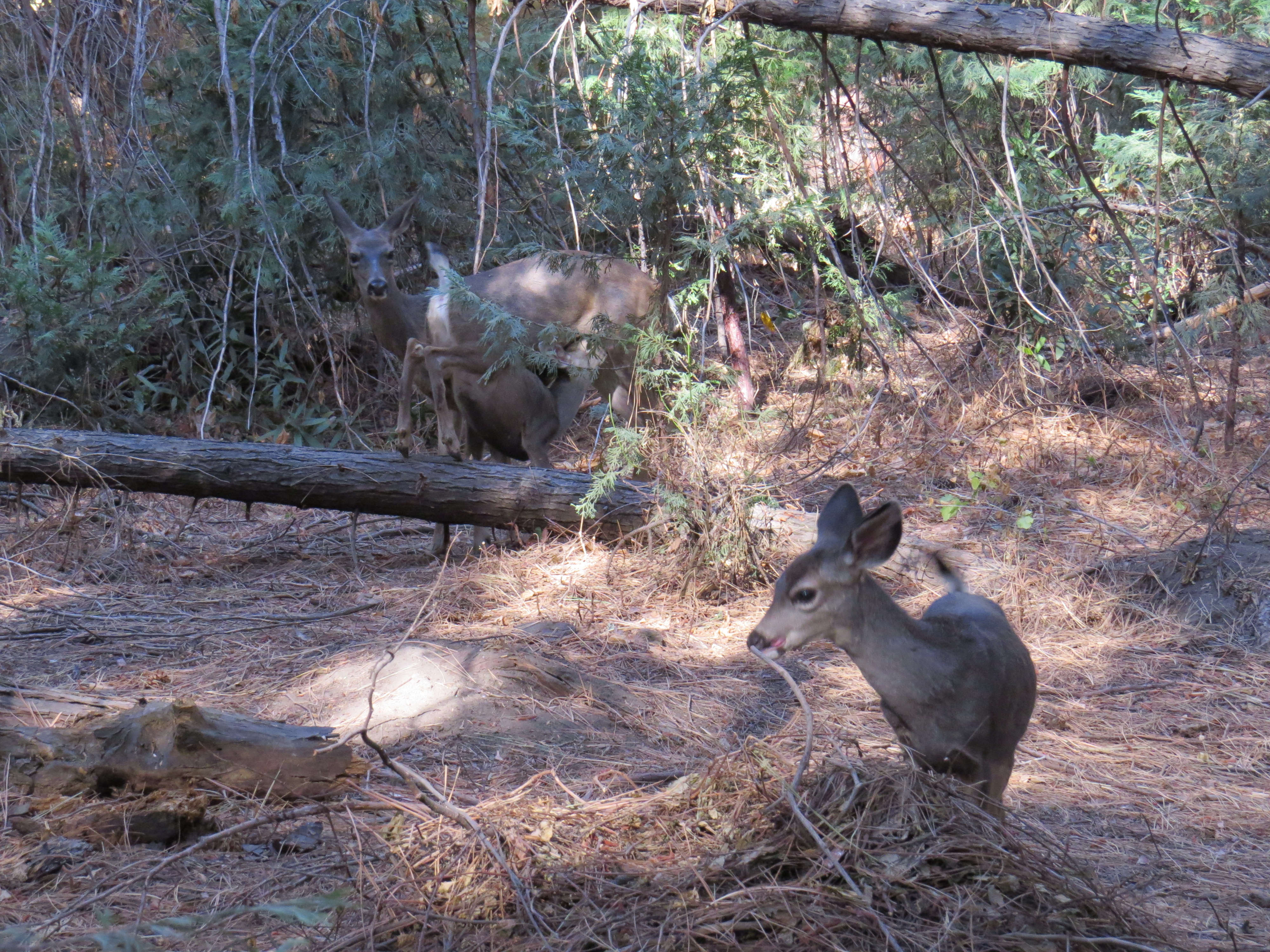 Behalve eekhoorns zien we vandaag veel herten, een bok, maar ook een aantal kalven die proberen te drinken bij mams zodra de gelegenheid zich voordoet.