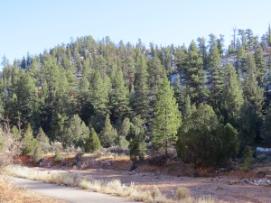 Het is wel erg koud, zo ongeveer min 5. Rob besluit nog even een half uurtje te gaan hardlopen. Net als in Death Valley gaat ook hier de weg weer omhoog, maar gelukkig op de terugweg dan ook weer naar beneden. Een stukje van de Pa’rus Trail heeft hij gelopen in het park vanaf het Visitor Center.