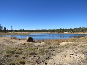 Daarna beginnen we aan de reis naar Bryce Canyon. Het is slechts 2,5 uur rijden voor ongeveer 150 kilometer. Dus we hebben tijd aan ons zelf. We komen echt door het platteland van Amerika, met weinig bedrijvigheid. Gelukkig passeren we onderweg nog Red Canyon, in het Dixie National Forest, dat maakt de reis net iets leuker. Des te dichter we bij Bryce komen des te meer wij het idee krijgen dat we in niemandsland zijn beland. Bijna elk hotel dat we passeren heeft al het bordje gesloten voor het seizoen opgehangen. Gelukkig is dat niet het geval bij ons hotel, Best Western Ruby’s Inn. Dit is echt een heel groot hotel en dan niet in de hoogte, maar wel qua gebied dat het bestrijkt. Wij hebben een kamer op de tweede verdieping met lakeview, uitzicht op het meer. Op het meertje zien we ijs liggen en onderweg hebben we ook al sneeuw gezien tussen de bomen. Dat klopt ook wel met de hoogte, want we slapen namelijk op ruim 2200 meter hoogte. In de zon voelt het echter nooit koud aan.