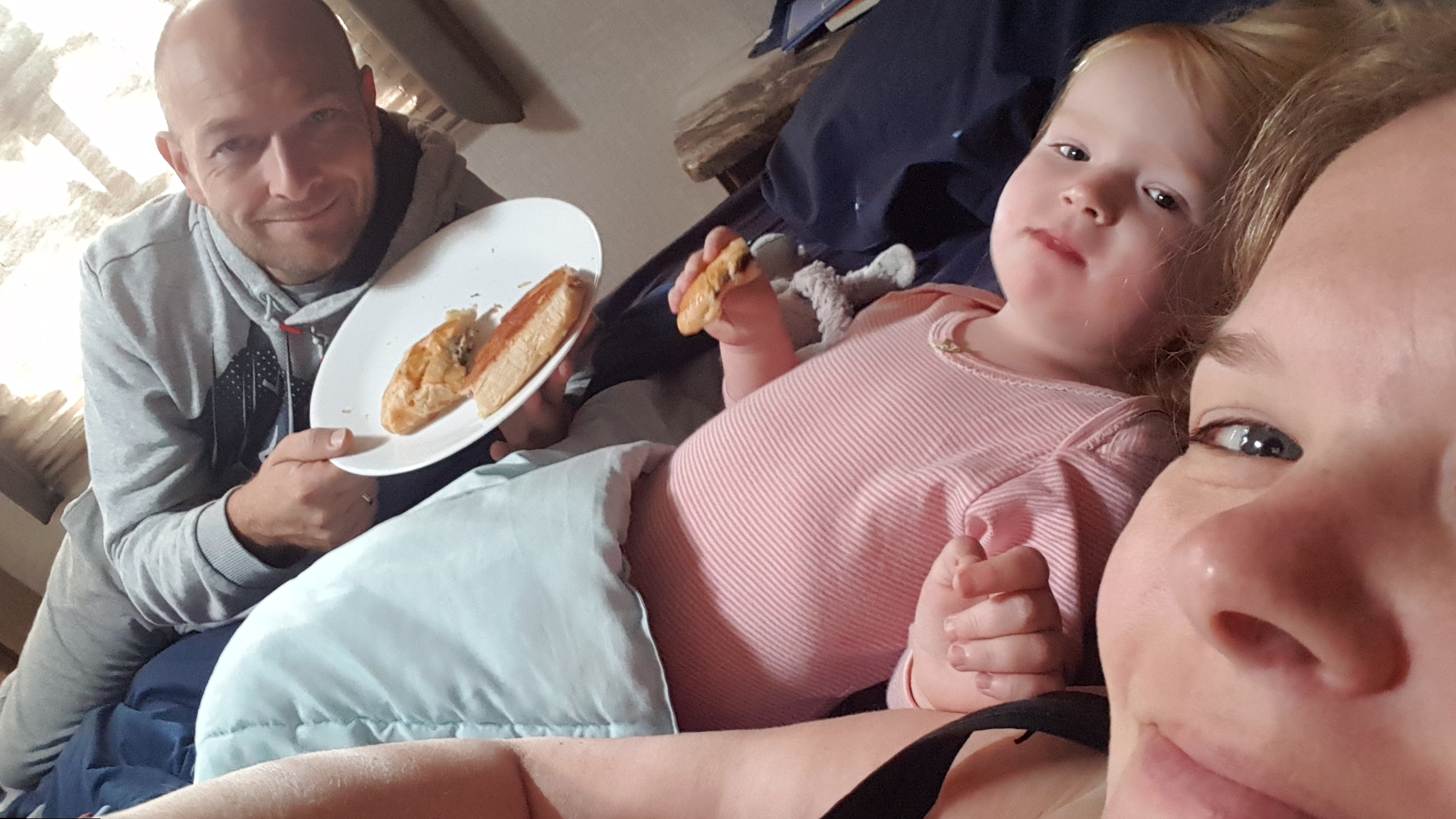 En wat een verrassing! Hij heeft ontbijt meegenomen, verse gevulde croissants in 3 smaken: chocola, aardbei/room en spinazie/kaas. We smullen er met zijn drietjes heerlijk van: ontbijt op bed. Daarna is het tijd voor de hele familie om te douchen, wat hier dus met muntjes gaat. Maar we hadden van de lieve dame maar liefst 6 muntjes gekregen, dus dat komt helemaal goed.