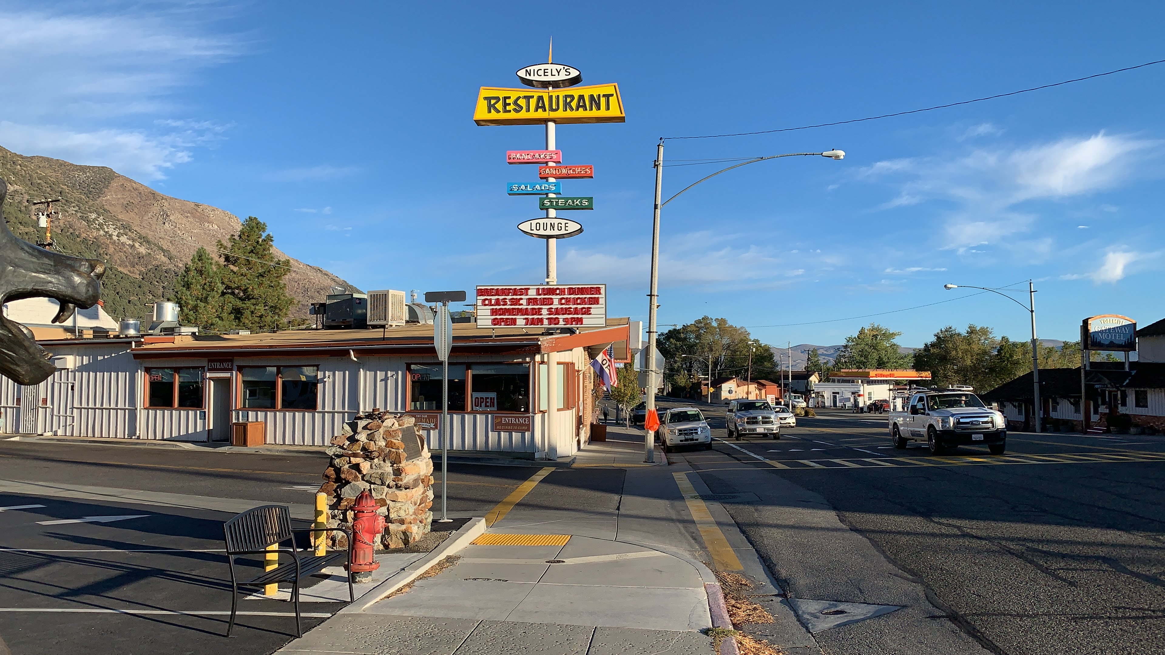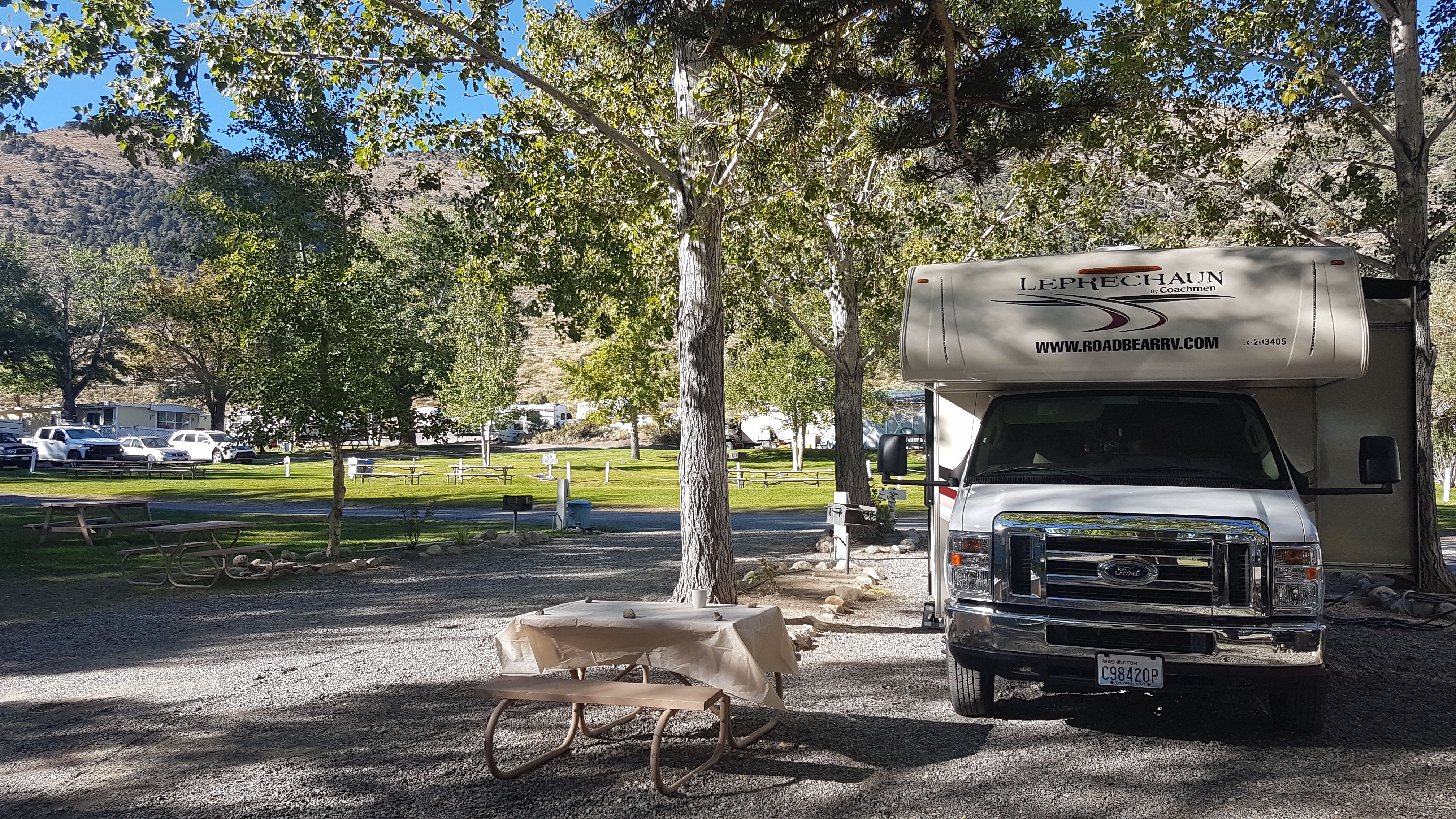 Het is heerlijk wakker worden op Mono Vista RV park wetende dat we vandaag niet hoeven te vertrekken. Zonder dat Eline en Lizzy het weten is Rob iets na 7 uur al op pad geweest om het stadje te verkennen. Hij is helemaal enthousiast, leuke eettentjes en een supermarkt. Hij wil sowieso die dag samen op pad en ergens eten.