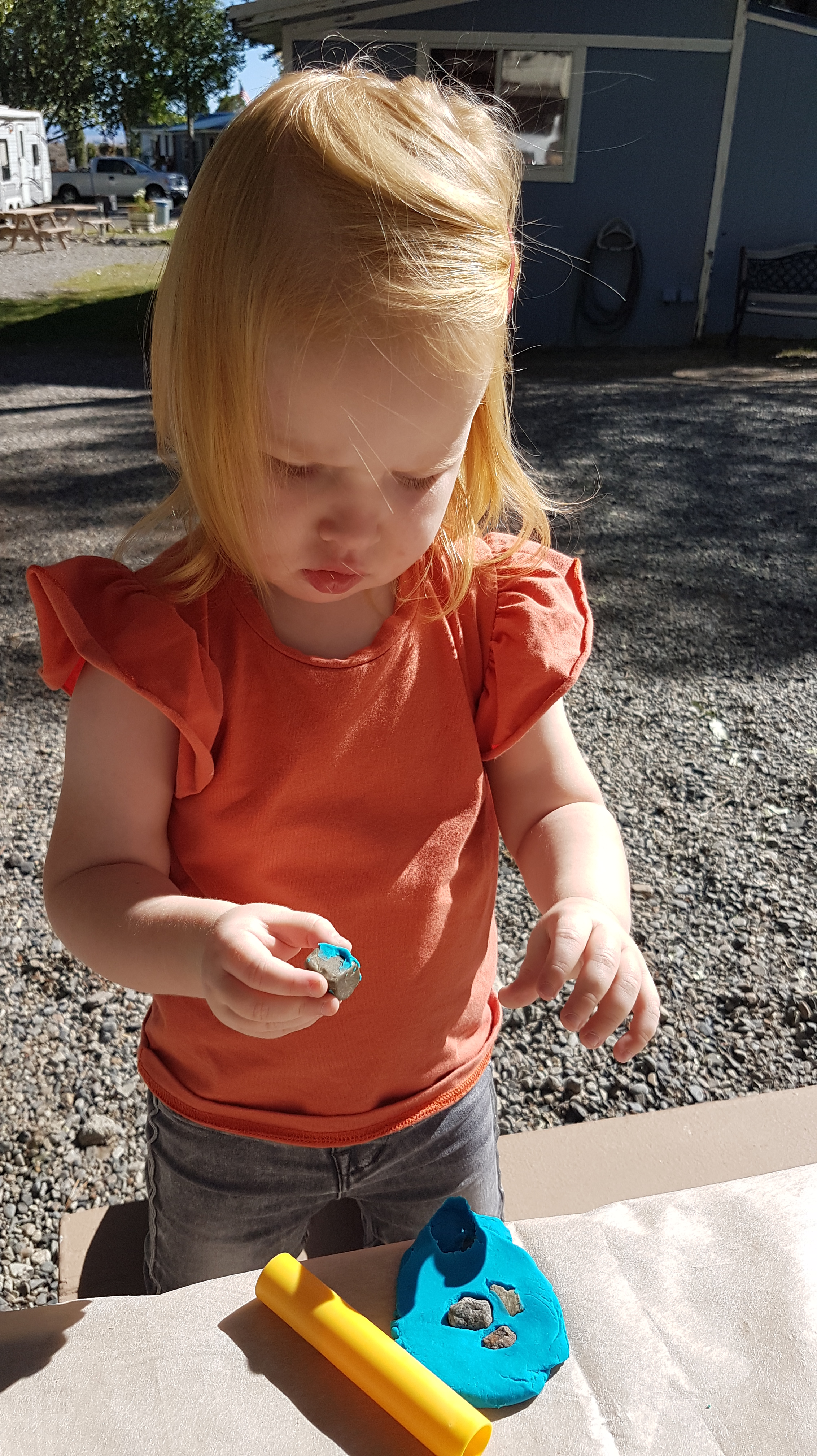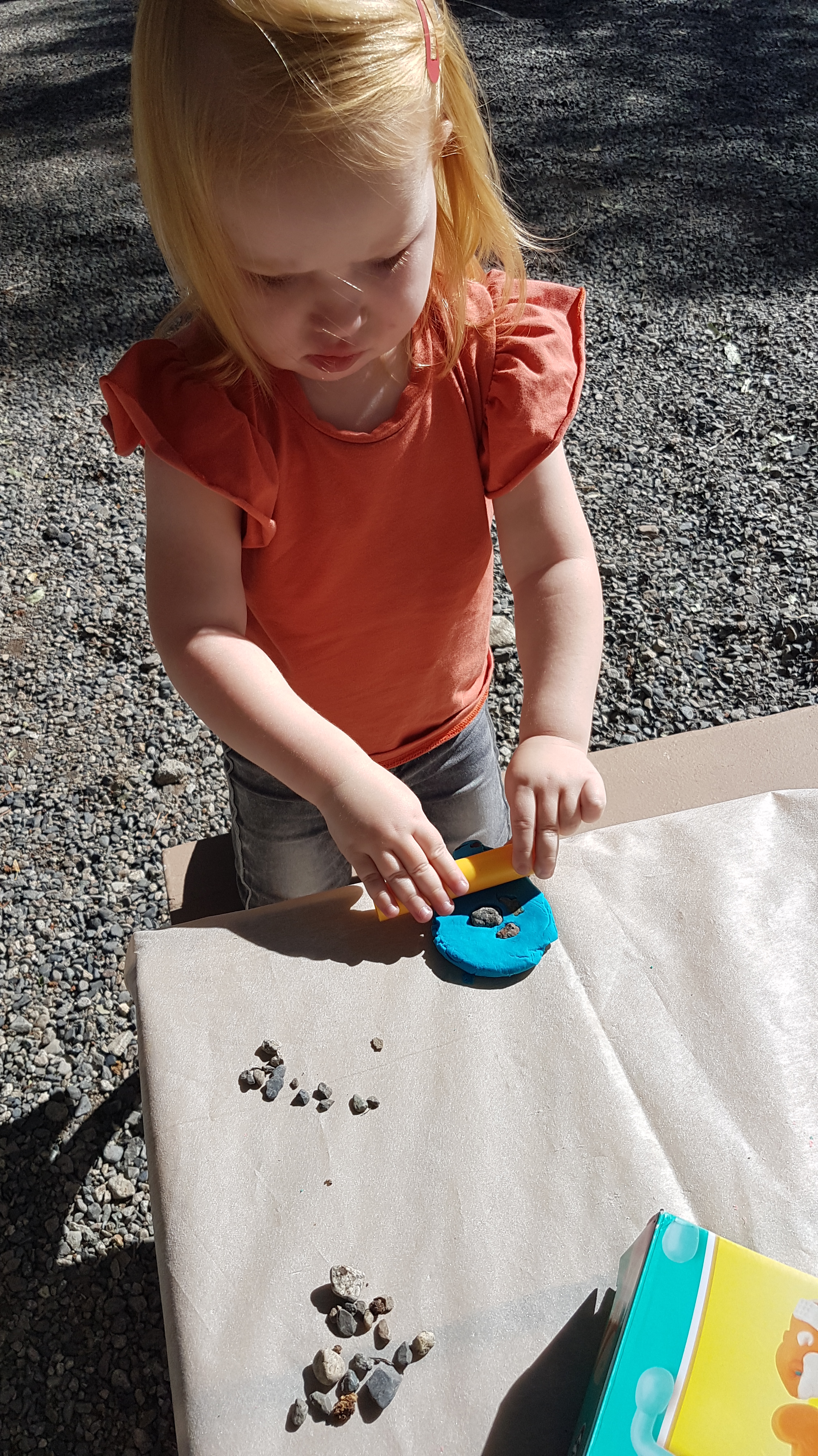 De rest van de ochtend blijft heerlijk relaxt, er wordt met water gespeeld, met klei en natuurlijk worden er ook weer stenen gezocht. En wat blijkt: klei en stenen kun je ook prima combineren.
