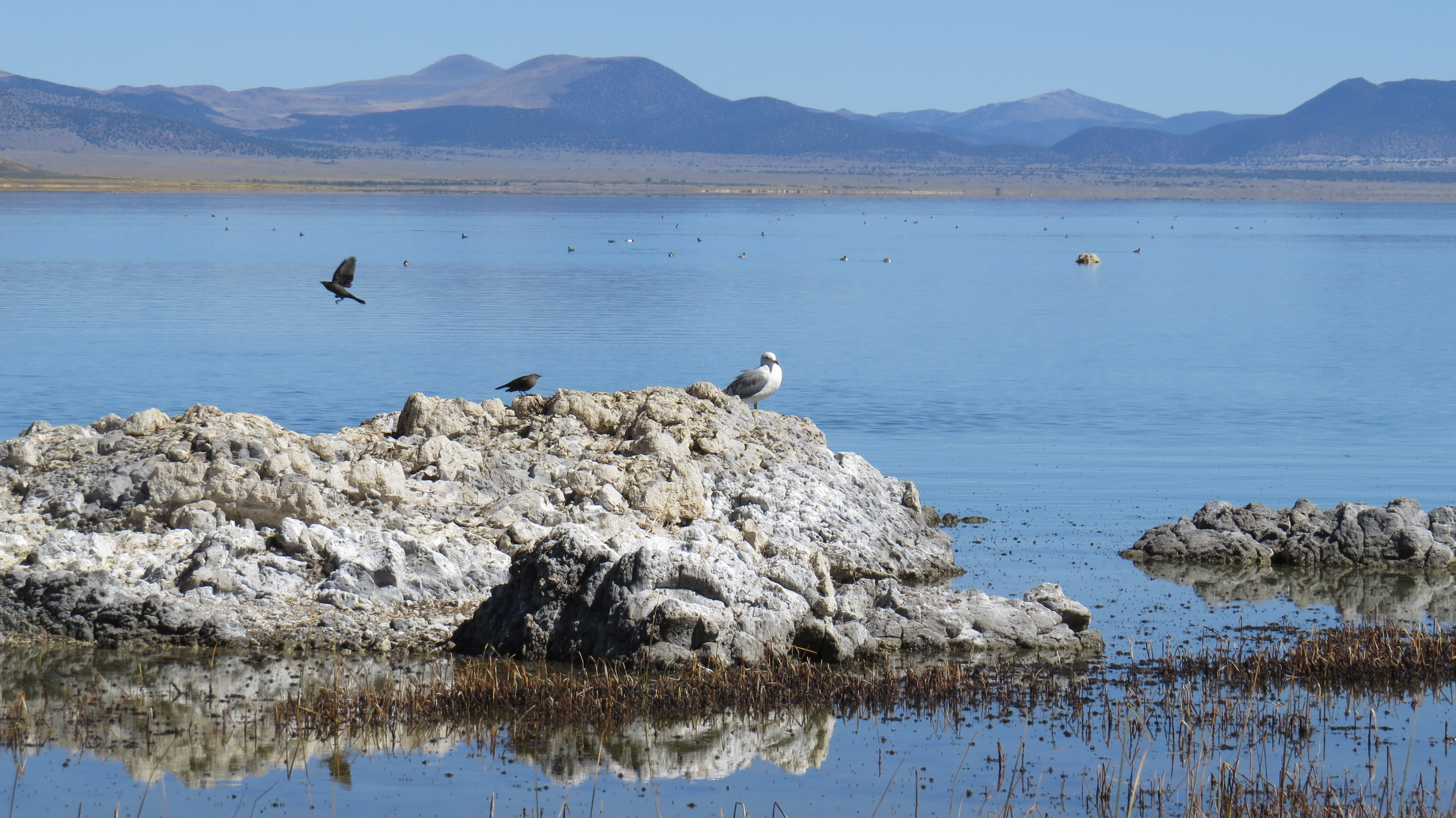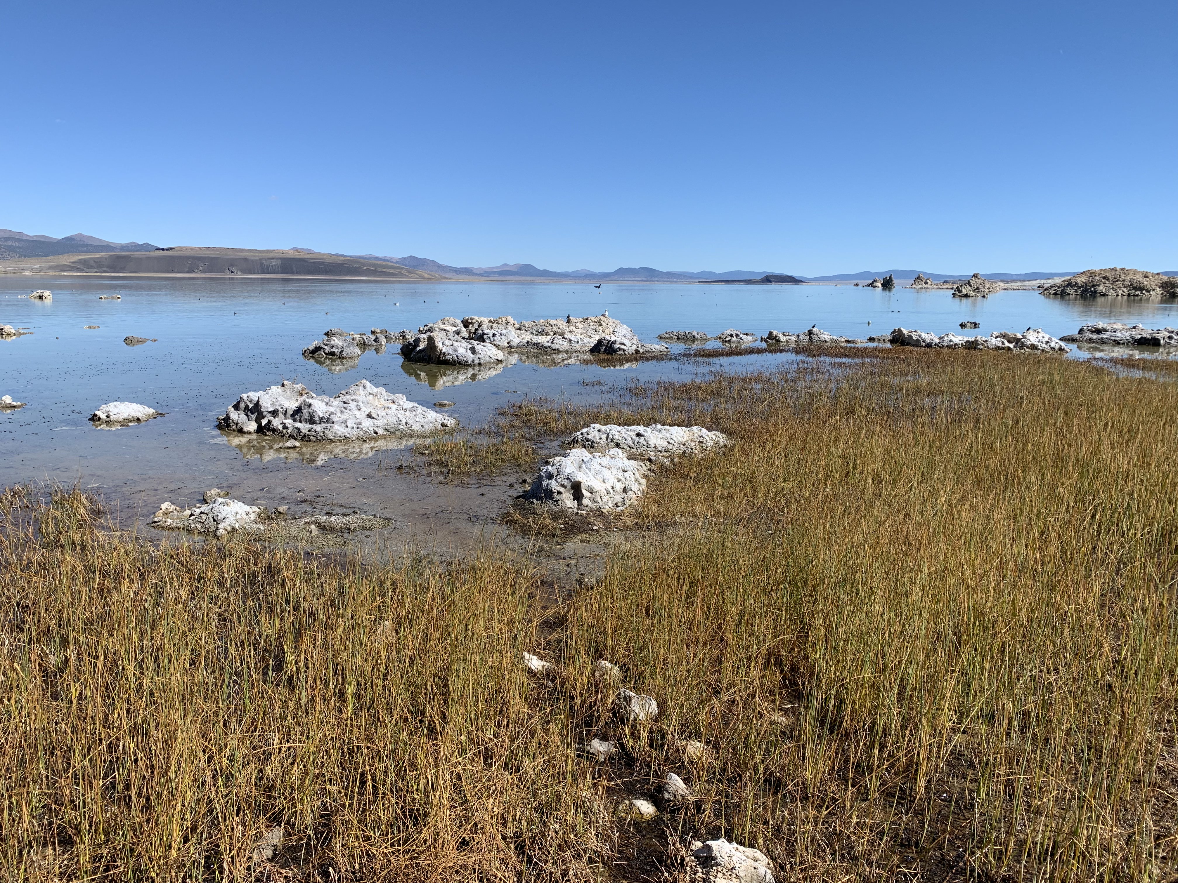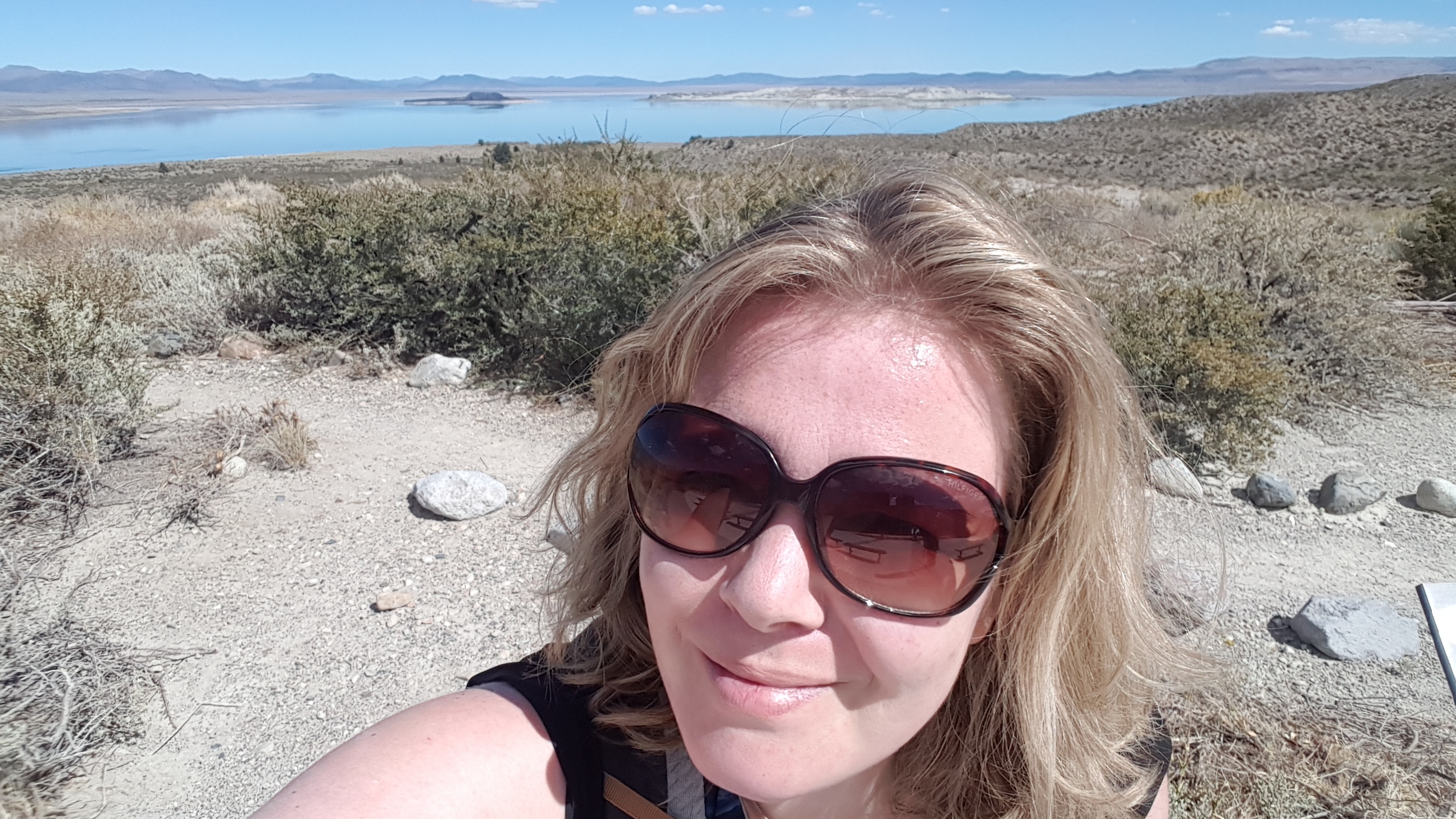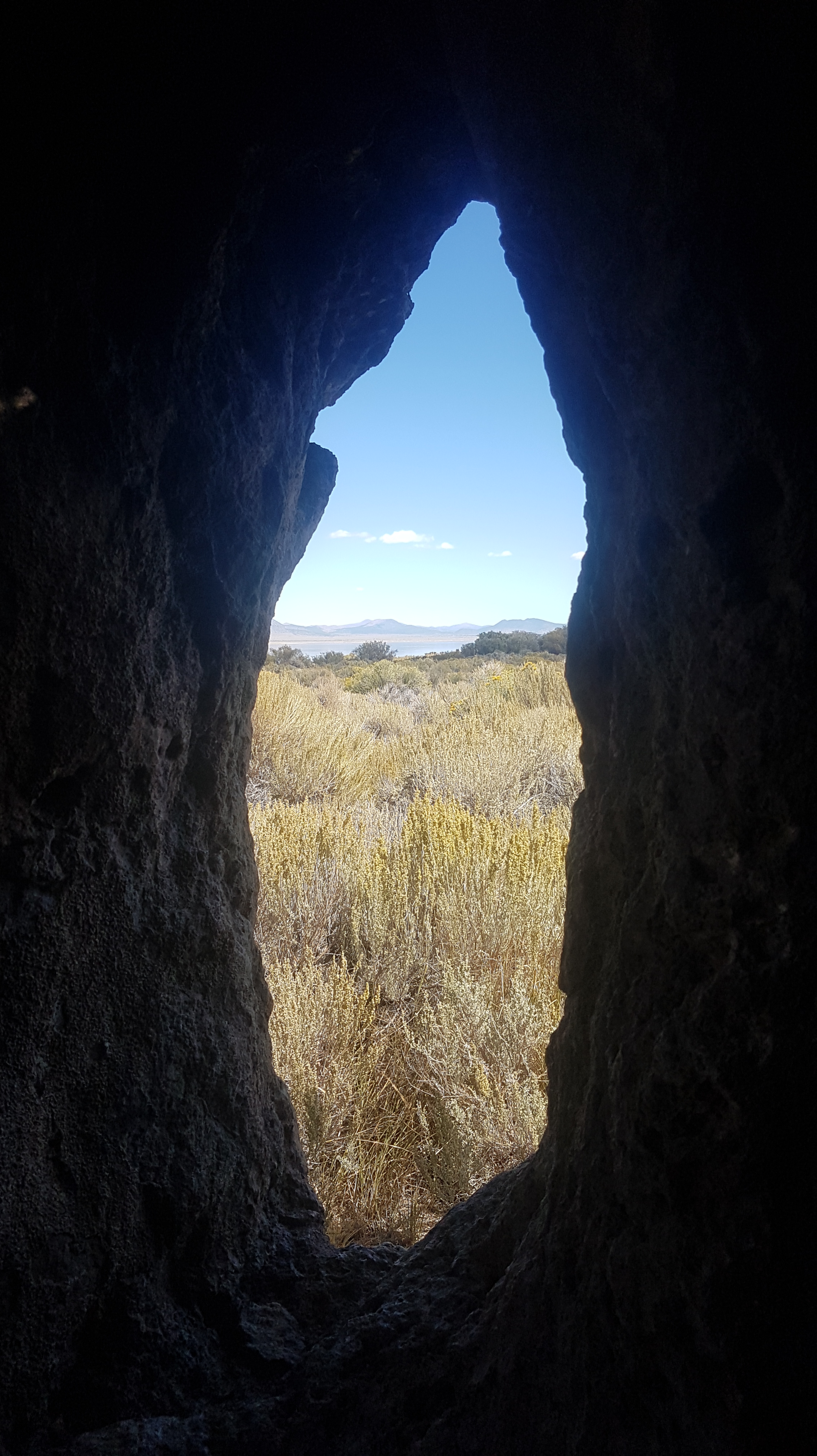 Daarna is het tijd voor het korte ritje naar het Visitor Center van Mono Basin Scenic Area. We pakken onze rugzak in, Lizzy gaat bij papa in de Tula en zo beginnen we aan de wandeling. Het pad is goed te doen, eerst zanderig en daarna vooral rotsachtig. De heenreis is het naar beneden, dus dat is het makkelijke deel. En bovendien is het uitzicht op Mono Lake geweldig. In het meer zijn vele Tufa torens te zien (kalktufsteenformaties), ze worden ook wel de zoutpilaren genoemd. Mono Lake is ongeveer 2,5 keer zo zout als de zee en op de Tufa’s dicht bij het water zie je de zoutkristallen dus ook echt liggen. Tijdens de wandeling komen we Icebox Tufa tegen, een Tufa die volledig op het droge ligt waar het zout niet op te zien is, het lijkt gewoon een rots. Hij doet zijn naam eer aan, want binnenin is het heerlijk koel terwijl de temperatuur behoorlijk aan het oplopen is.