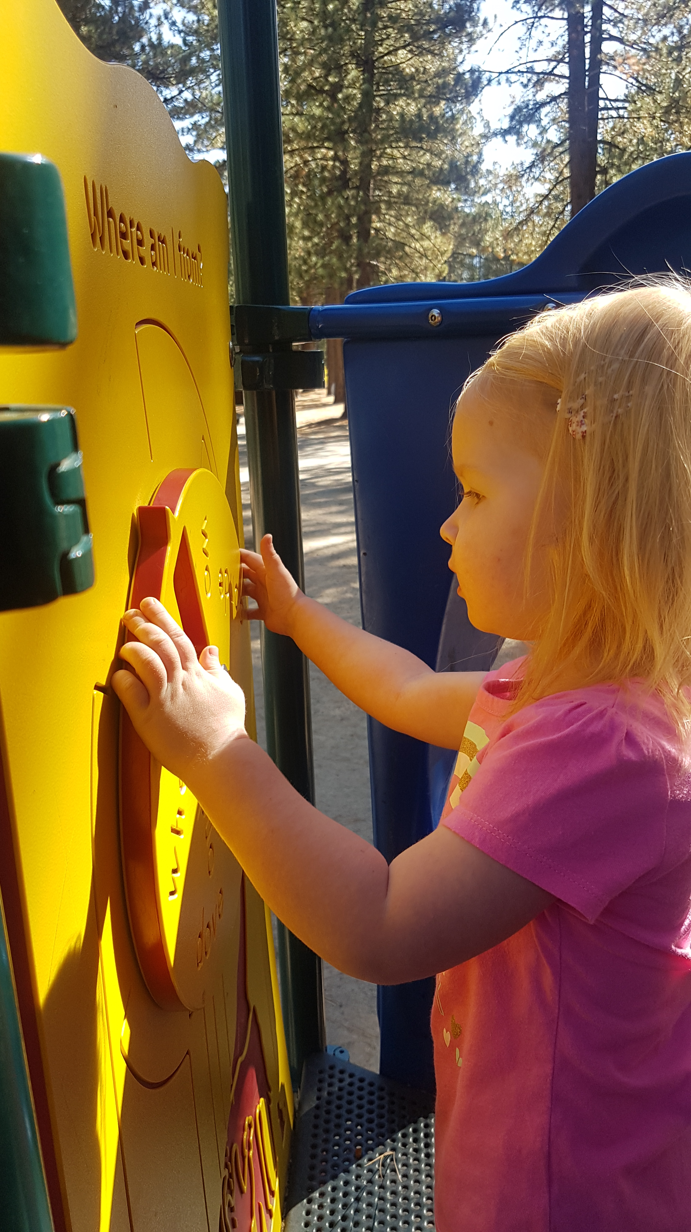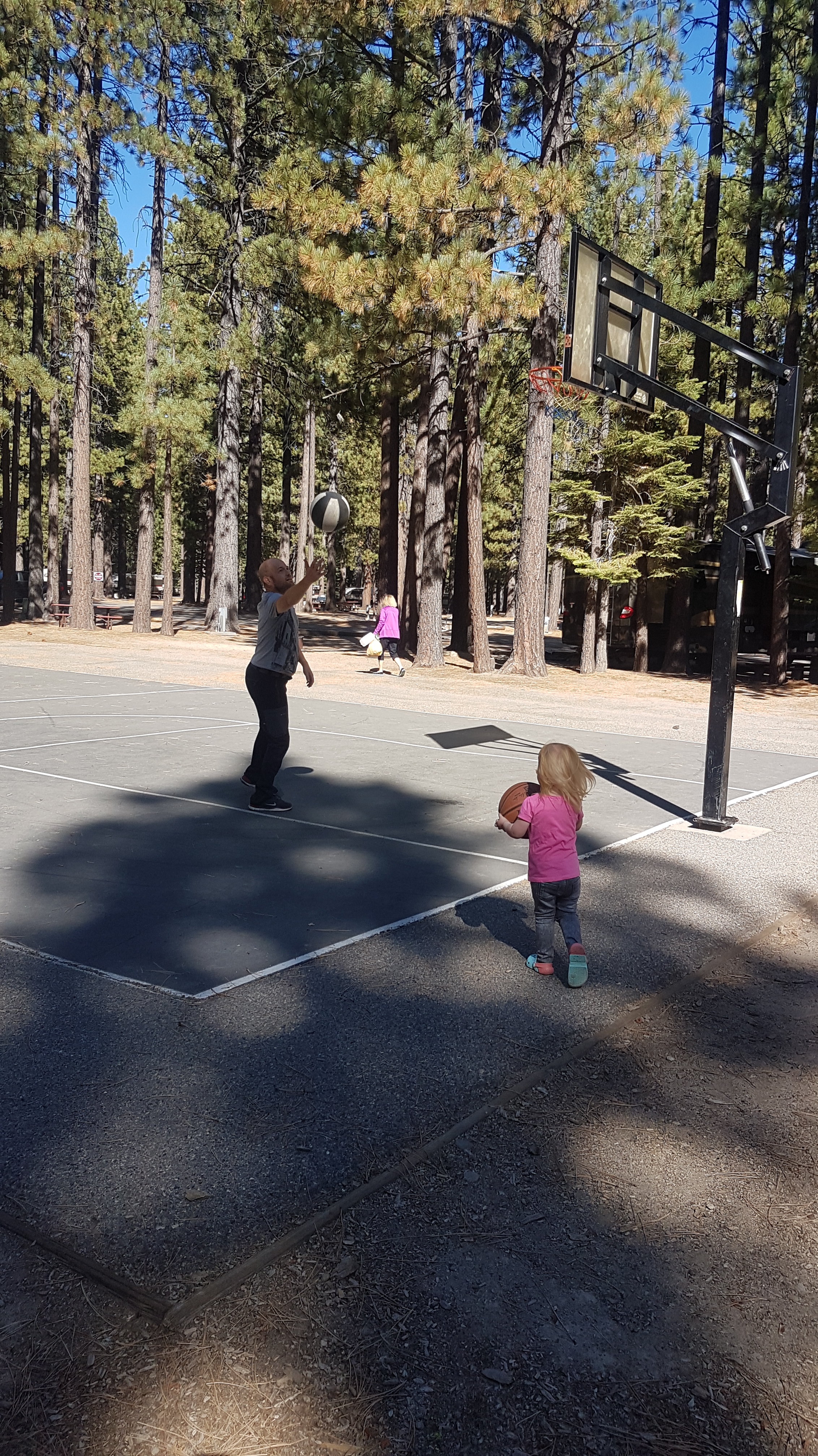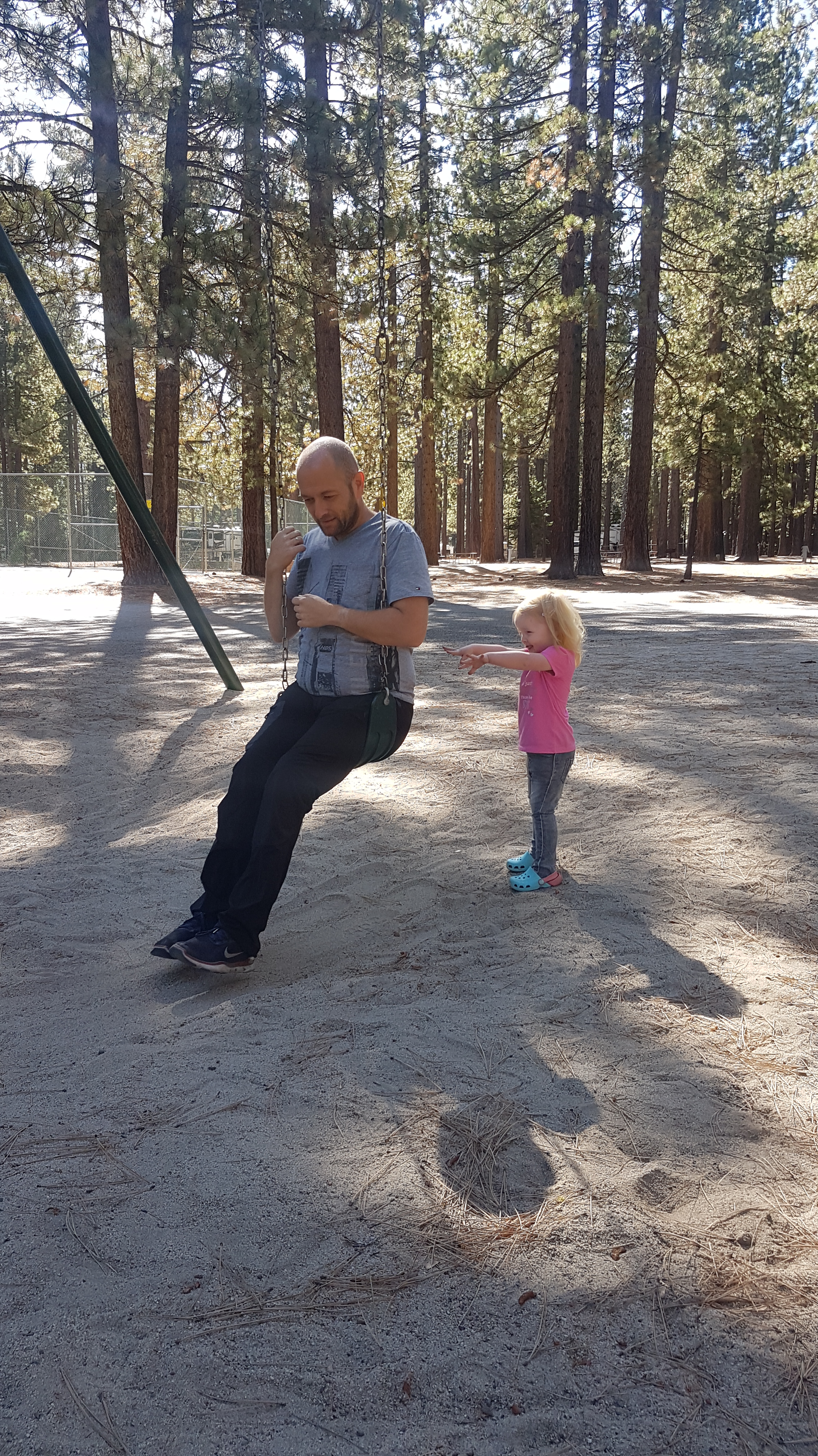 We beginnen de ochtend rustig in de camper, ontbijtje, beetje omlummelen en rustig de camper klaarmaken voor vertrek. We nemen nog even een kijkje in de winkel en scoren een magneet. Daarna is er nog rustig te tijd voor Lizzy (en ons haha) om te spelen in de speeltuin voor we onze reis vervolgen. We nemen de Scenic Byway aan de oostkant van Lake Tahoe, eerst een kort stukje bekende route door het stadje met aan het eind de casino’s. Rob vergelijkt het vanochtend met Stadskanaal, het is een langgerekt stuk met her en der plukjes winkels.