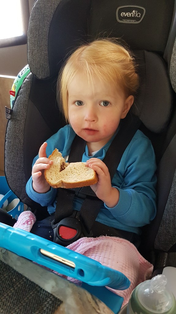 Het is al bijna vier uur als we weer in de camper stappen. Even weer warm worden brrrr! Lizzy heeft wel zin aan een broodje, buiten zijn maakt hongerig! Daarna is het de hoogste tijd om weer verder te rijden. We maken nog een paar korte stops om van het uitzicht te genieten, maar we proberen ook een beetje door te rijden zodat we voor het donker op de camping zijn.
