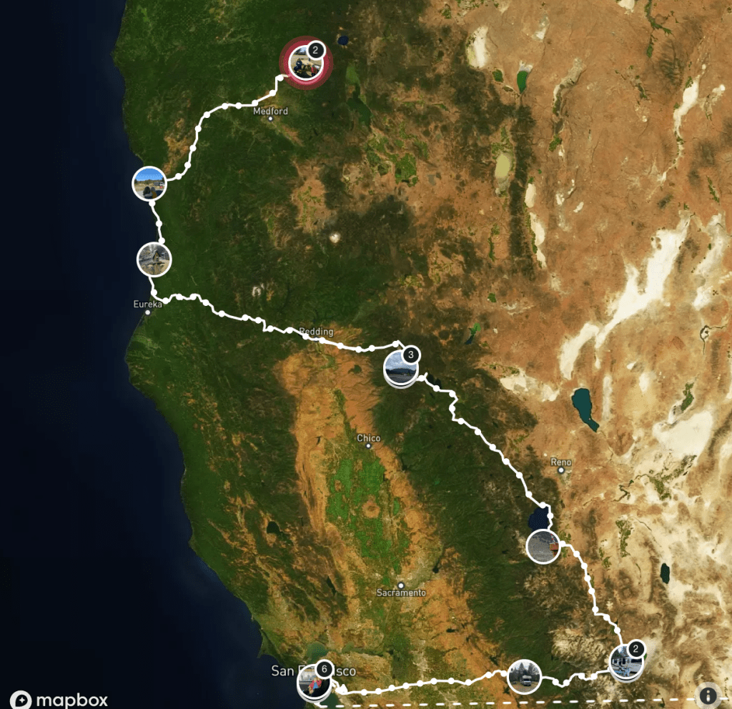 De route is globaal samengesteld, maar is nog steeds in ontwikkeling en precies uitwerken doen we het nog onderweg. Het plaatje is van de planning, Het schema is live. Het is toch relatief laagseizoen en niet het meest drukke gebied van Amerika dus dat moet vast goed komen.